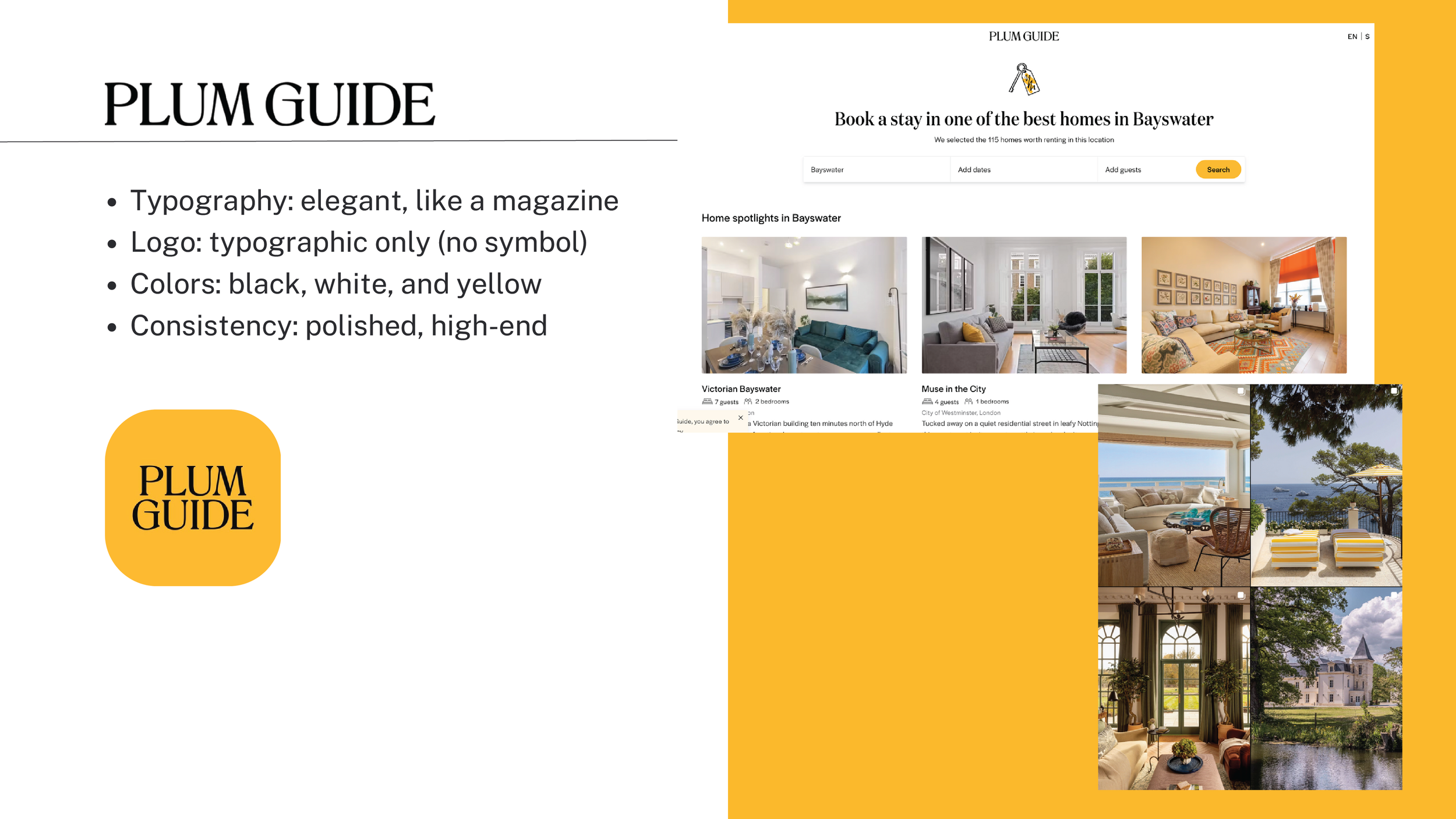 This project combined branding research, visual analysis, and presentation design. I examined seven online marketplace stays, evaluating brand consistency, typography, color systems, iconography, website usability, and overall visual cohesion. The findings were presented in a PechaKucha format (10 slides, 15 seconds each), requiring clarity, restraint, and strong visual storytelling. This assignment deepened my understanding of how branding choices directly impact user perception and trust.